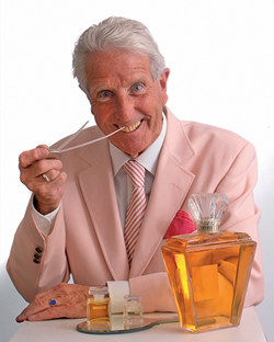 A passionate rose lover and member of the Royal National Rose Society, John built his business by exhibiting his hand-blended perfumes at local rose shows and festivals, eventually creating “Society Rose” perfume for the RNRS, with other perfumes following in the line for the society. John also has a thriving business to as a consultant to the flavor and fragrance industry and is much in demand as a guest speaker and lecturer; he appeared on BBC TV’s first season of The Apprentice in 2008, advising the final teams on creating a new fragrance. (clique aqui para ler a entrevista completa)